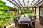 A nappali közvetlen teraszkapcsolattal rendelkezik, így a kert szinte a lakótér folytatása.