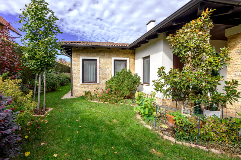 Az 1238 m²-es, parkosított kert gondosan megkomponált: