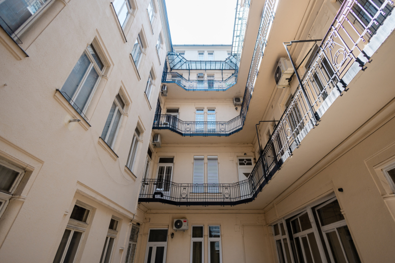 A ház építészeti szempontból igazi gyöngyszem, közvetlenül a város lüktető központjában, mégis kellemesen csendes lakókörnyezetben. A kiváló közlekedés M3, M4 metró, buszok, villamosok, valamint a belvárosi életstílus - kávézók, éttermek, Duna-part, Váci utca - mind karnyújtásnyira található.