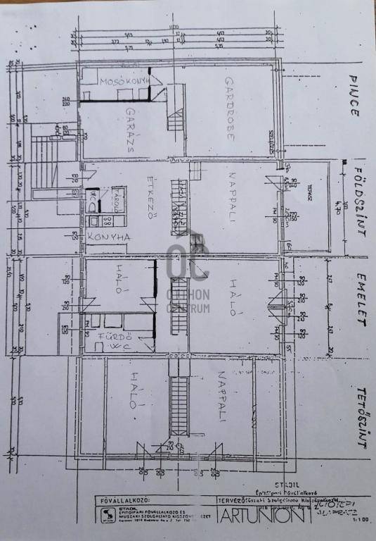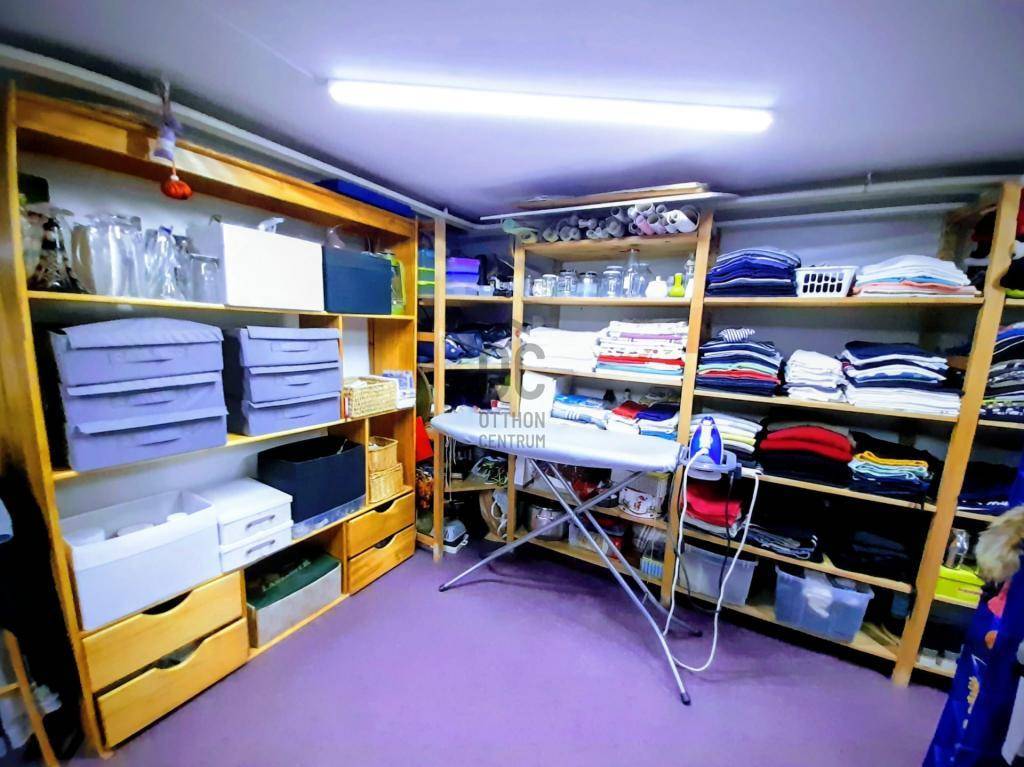 A pinceszinten 44 m²-es gardrób és garázs is található, kint pedig 2 autóbeálló és kerti tároló szolgálja a kényelmet.