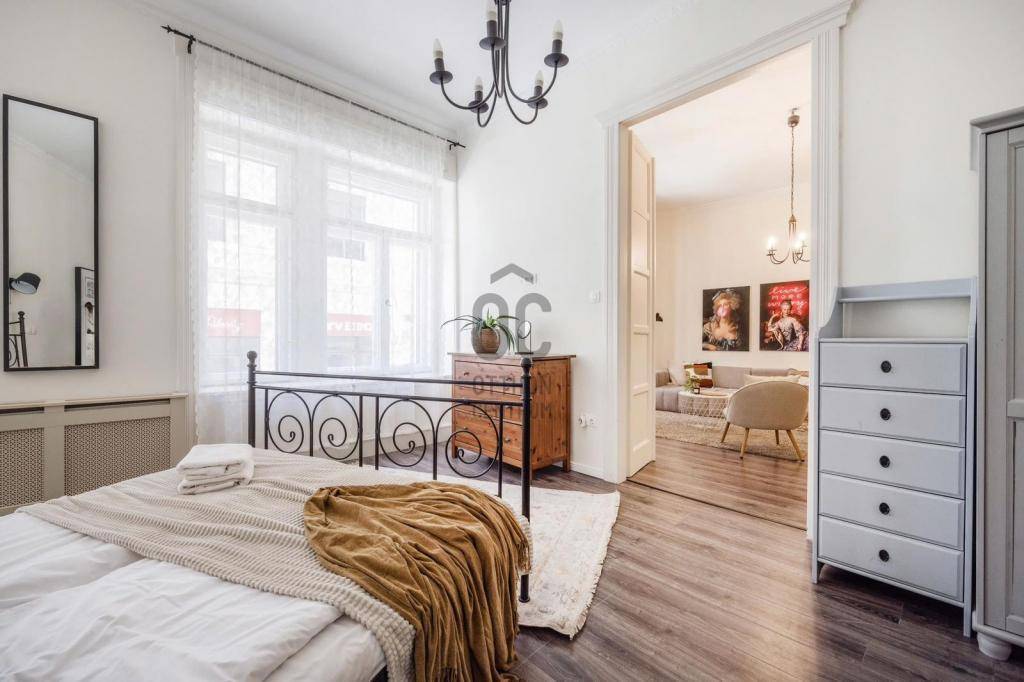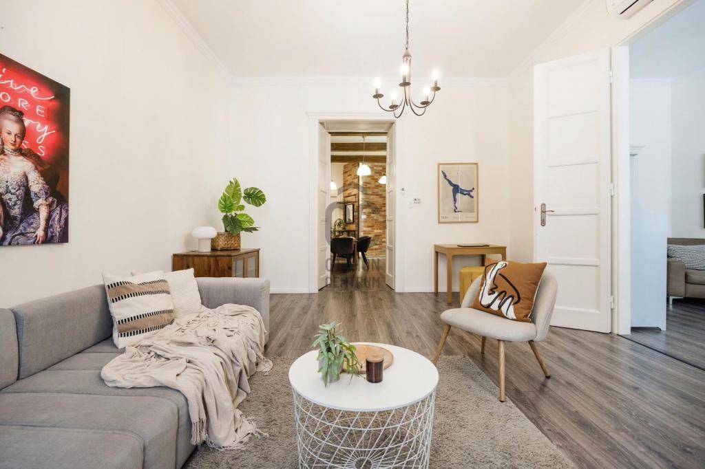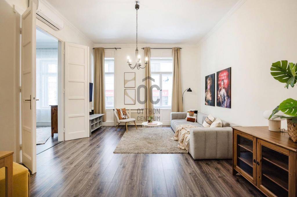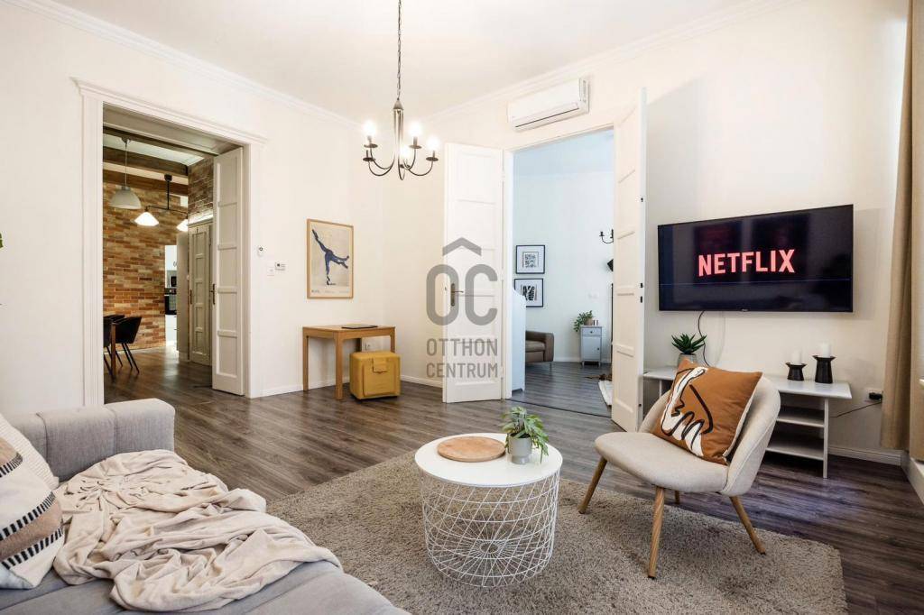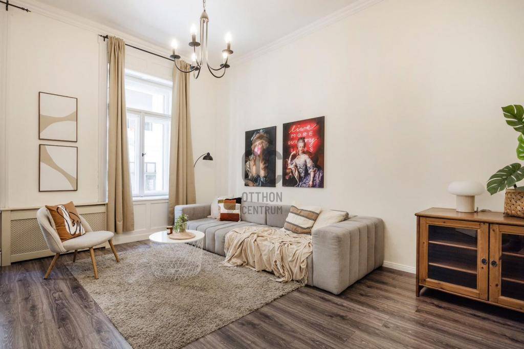 A 2023-ban teljeskörűen felújított, modern és elegáns lakás azonnal költözhető: a 2 hálószobás, 2 fürdőszobás otthon egy csendes, fákkal szegélyezett utcában található, a főváros legkeresettebb kerületében.