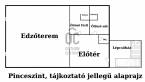 Pinceszint: teljesen felszerelt edzőterem női-férfi zuhanyzókkal és mellékhelyiségekkel – ideális fitnesz, wellness, iroda vagy stúdió kialakítására.