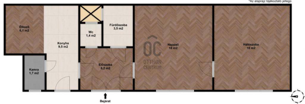 - Nappali, hálószoba, konyha-étkező, kamra, fürdőszoba, wc, előszoba