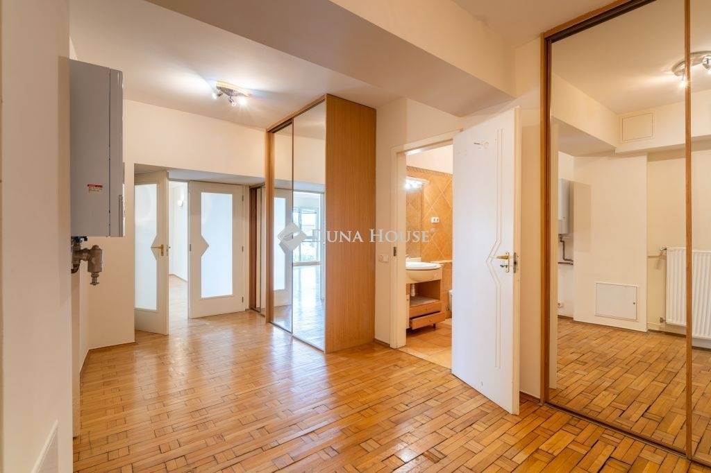 A lakás tágas terekkel rendelkezik: a nagy nappali, az abból nyíló szoba, a konyha és étkező mind napfényesek, nyugati tájolásúak, közvetlenül a Dunára néznek.