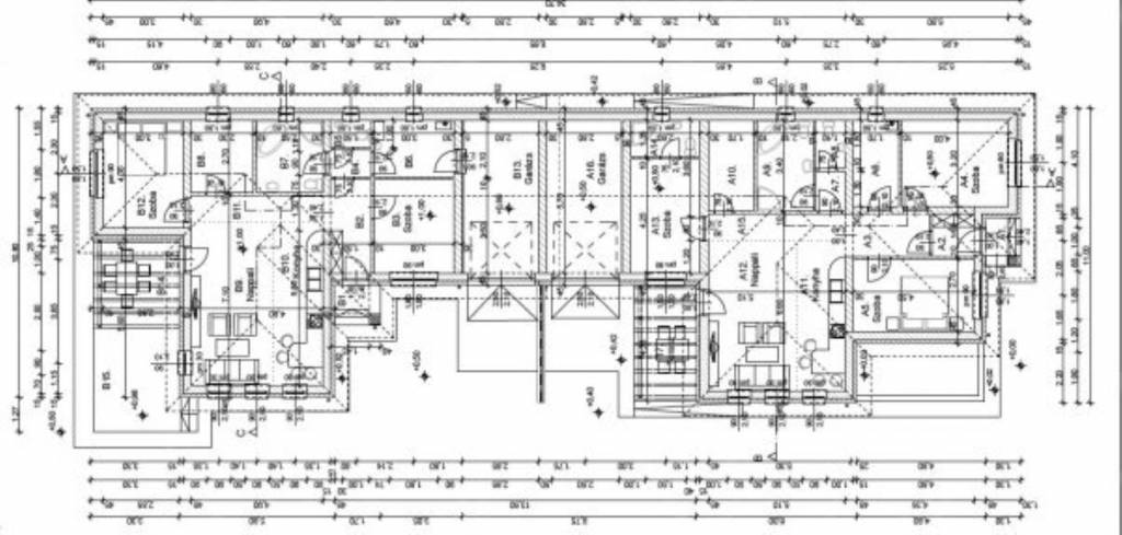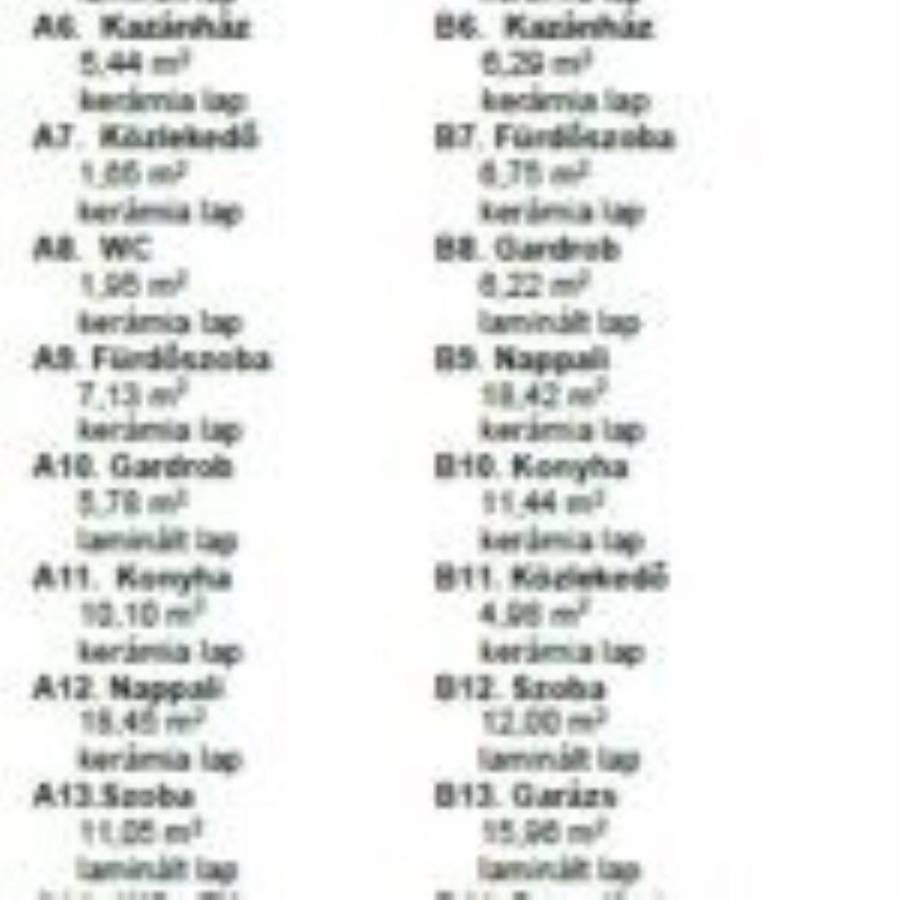 az ingatlanok alapterülete: „A” lakás (utcafronti) br. 119 nm, „B” lakás (hátsó ikerház nagyobb telekkel) 101 nm.