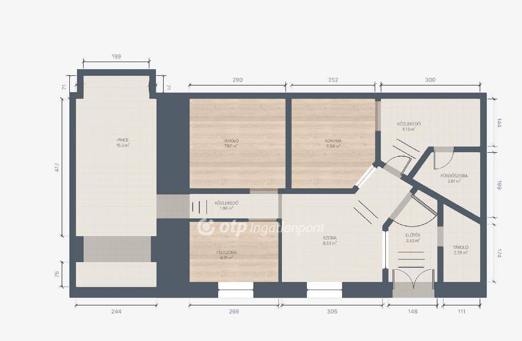 A tulajdoni lapon raktár besorolású és lakásnak kialakított, frissen kifestett ingatlan közepes állapotú. A melegvizet elektromos bojler adja, a fűtésről gázkazán gondoskodik. Az ingatlanhoz tartozik egy a lakásból közvetlenül megközelíthető 15 m2-es pince.