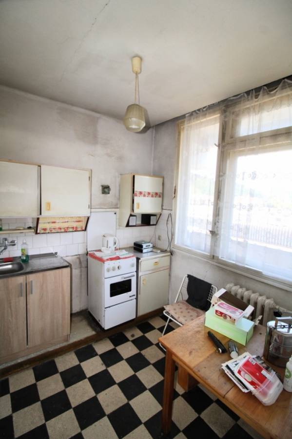A lakás teljes mértékben felújítandó állapotú, a lépcsőház rendezett a lakóközösség jó.