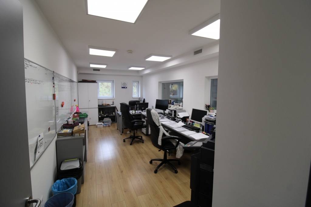 A hozzá tartozó korszerű irodaház a képeken megjelenített állapotú, az iroda 2 a gyárépület 1 szintes, nagy belmagassággal.