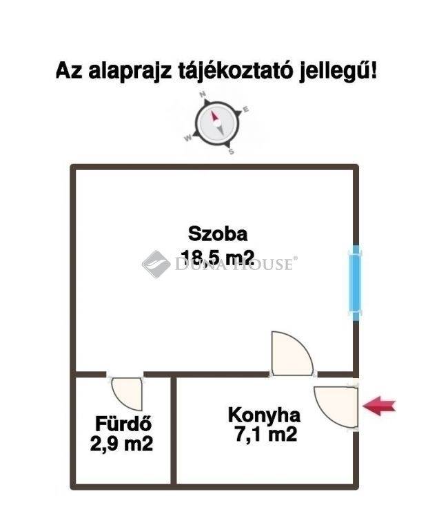 A lakásban található egy szoba, egy praktikusan kialakított konyha, valamint egy fürdőszoba WC-vel.