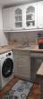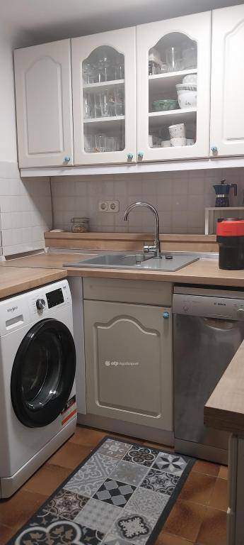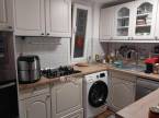 Az előszobában és a nappaliban beépített szekrények kínálnak sok tárolóhelyet, a konyha gépesített (beépített háztartási gépekkel felszerelt).