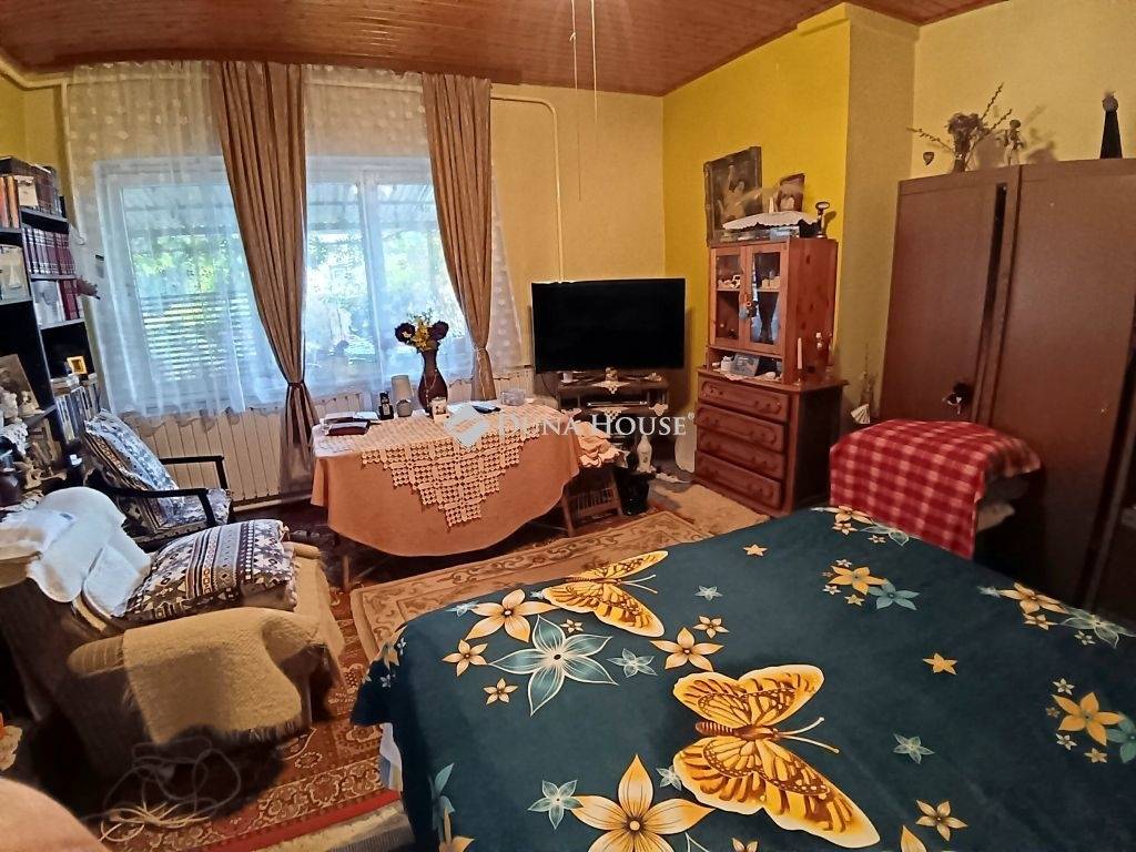 Bicske nagyállomásnál kínáljuk eladásra, ezt a két lakrészes jó állapotú, azonnal költözhető családi házat. Az épületet beton alapon kő és tégla falazattal, fa födém és tető szerkezettel, cserép héjazással kivitelezték. Az első lakrész 55 nm-es, két szoba összkomfort, plusz fedett terasz, a második lakrész 33 nm-es, garzon kivitelű, szoba, fürdő, előtér helyiségekből áll. A felépítmények fűtését cirkóval, vegyes tüzelésű kazánnal és kályhával oldották meg. A felépítményekhez tartozik egy kétállásos gépjármű tároló, több mellék- és gazdasági épület, illetve dísz növényekkel és dísztóval ellátott kert.Az ingatlan osztatlan közös tulajdon, de a kínált lakrész önállóan használható, használati megosztási szerződéssel rendelkezik.