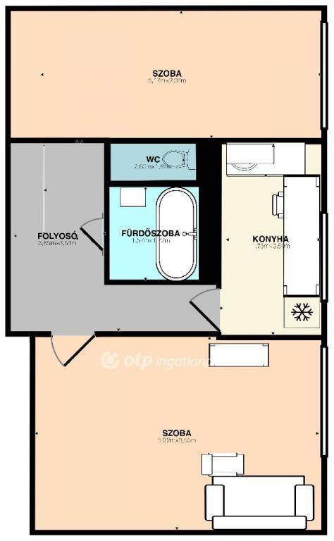 A lakás délnyugati fekvése napfényes, meleg hangulatú életteret biztosít. A beépített szekrénnyel kialakított előszoba praktikus fogadótér, a két külön nyíló szoba jól szeparálható, kényelmes elrendezést biztosít. A tágas, étkezővel egybekötött konyha a mindennapok színtere lehet, míg a fürdőszoba és a WC külön helyiségekben található. A lakáshoz egy közös használatú alagsori tároló is tartozik, amely értékes kiegészítést jelent.