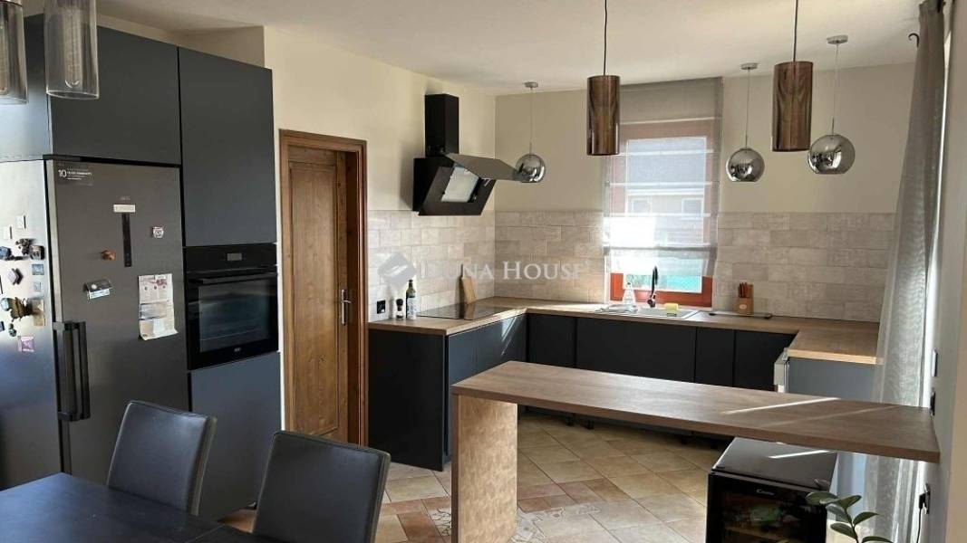 Eladó mediterrán stílusú családi ház Kecskemét-Kadafalván!Kecskemét közkedvelt részén, Kadafalván eladó egy gyönyörű, 172 m²-es, amerikai konyhás, tágas nappalis + 3 szobás mediterrán stílusú családi ház, napelemmel 2100 m²-es parkosított telken, dupla garázzsal és hangulatos terasszal.Főbb jellemzők:Fa nyílászárók, háromrétegű üvegezéssel és zsalukkalOlasz kerámia tetőcserép, Lindab ereszcsatorna rendszer5 kW napelemrendszer + 10 kWh akkumulátor pakk alacsony rezsiPadlófűtés radiátorral kombinálvaKamera- és riasztórendszer a biztonságértSaját bio házi szennyvíztisztítóTágas, napfényes nappali és amerikai konyha, igényes burkolatokDupla garázs, nagy teraszCsendes, nyugodt környék, jó szomszédság, közel a városhoz. Ideális választás azoknak, akik kényelmes, korszerű és energiatakarékos otthont keresnek zöldövezetben.
