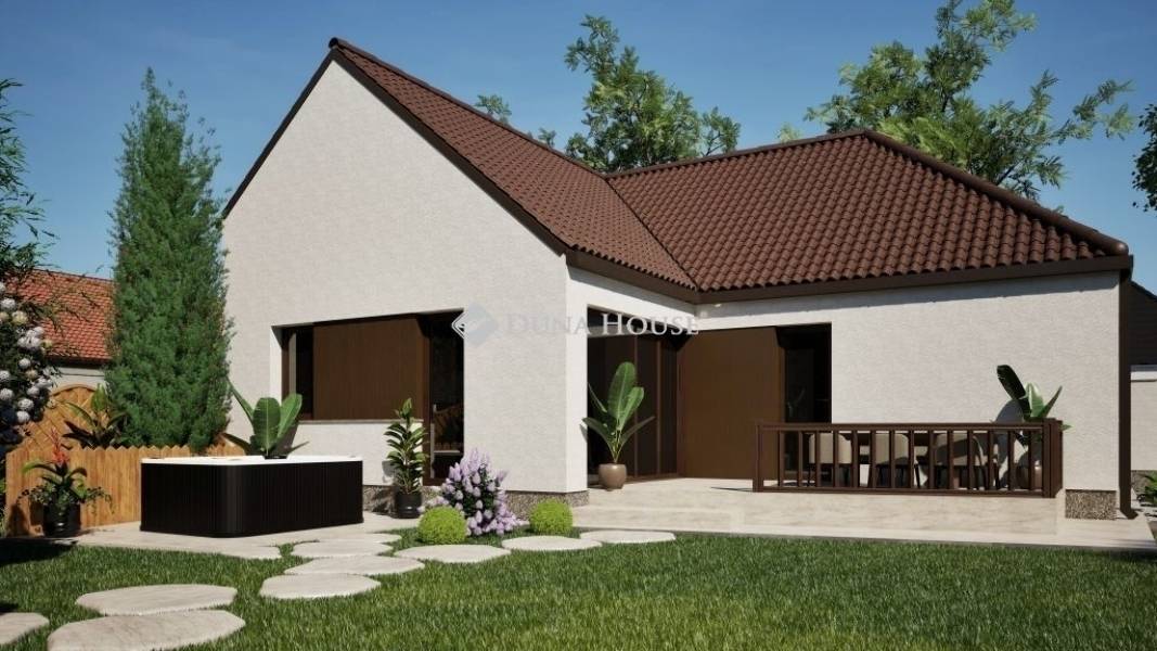 Belvárosi élet, kertvárosi béke - Az ideális családi házÚjépítésű családi ház eladó Kecskemét közkedvelt részén, a Holló utcában. A modern technológiával felszerelt ingatlan nettó alapterülete 104,75 m², amely egy 457 m²-es telken helyezkedik el.Az ár a telek árával együtt értendő.A kivitelezés már elkezdődött, az átadás várható ideje 2026 április.A praktikus elosztásnak köszönhetően az otthon 4 szobát kínál, amerikai konyhás nappalit - étkezővel, 3 hálószobát, fürdőszobát, háztartási helyiséget, kamrát, előszobát és egy burkolt teraszt.Műszaki tartalom:Wienerberger Porotherm Profi 30 X-Therm teherhordó falazat15 cm homlokzati hőszigetelésLeier Toscana tetőcserép mogyoró színbenPrémium minőségű, 3 rétegű üvegezésű Gealan S8000 külső nyílászárók dió/dió színbenElektromos redőnyök kívül-belül dió színbenPorotherm 10 tégla válaszfalHidegburkolat választható: 8.500 Ft / m2 -igMelegburkolat választható: 8.000 Ft / m2 -igSzaniterek 600.000 Ft-ig szabadon választhatókBorovi Szicília (dekorfóliás) beltéri ajtók tetszőleges színbenColorplast bejárati ajtó választható kivitelbenDupla szárnyas teraszajtóBosch 4000 levegő-víz hőszivattyú vizes padlófűtéssel2 db inverteres hűtő-fűtő klímaSzínezett bádog ereszcsatornarendszer RAL8017 színbenMűkő színezett ablakpárkányAz ingatlan kulcsrakész állapotban kerül átadásra, konyhabútor és lámpatestek nélkül.Közművek:Gáz: utcábanVillany: ingatlanbanCsatorna: ingatlanbanVíz: ingatlanbanCsendes környezet, alacsony fenntartási költségek, korszerű műszaki megoldások ideális választás azoknak, akik hosszú távú, értékálló otthont keresnek Kecskemét városában.