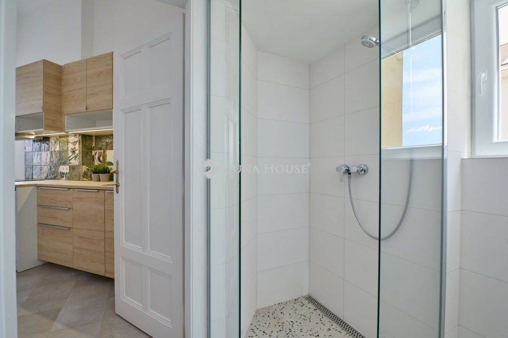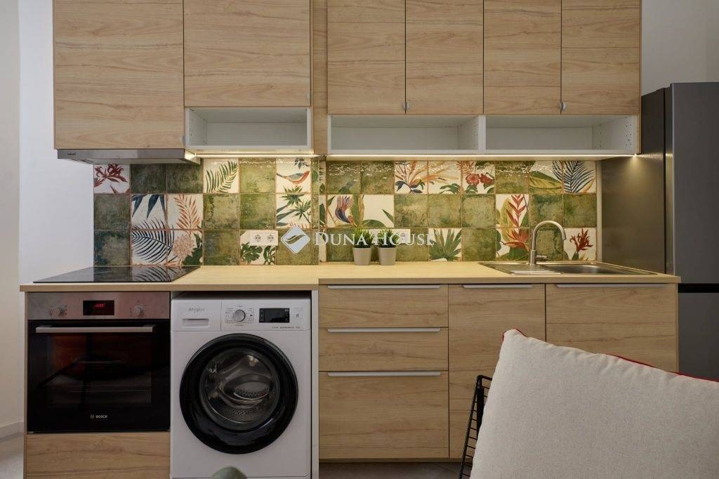 A felújítás során modern nyílászárók, redőnyök, beépített bútorok és teljesen gépesített konyha került kialakításra. A konyha indukciós főzőlappal, légkeveréses sütővel, elszívóval, mosogatógéppel, mosógéppel és fagyasztós hűtővel felszerelt. A két fürdőszobában törölközőszárítós radiátor és igényes burkolat, valamint épített zuhanykabin található.