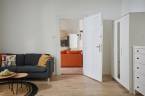 A bejáraton belépve egy közös térbe, a konyhás nappaliba érkezünk, ahol az étkező és a pihenőtér is kényelmesen elfér. Innen nyílik a két külön szoba.