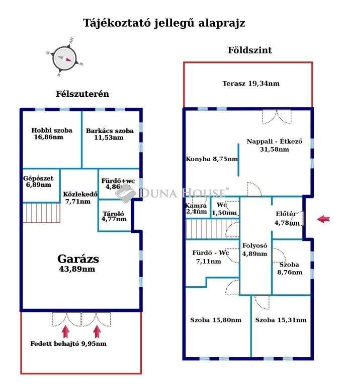 és két különálló szoba, amelyek tökéletesen alkalmasak tárolónak, irodának vagy akár vendégszobának is.