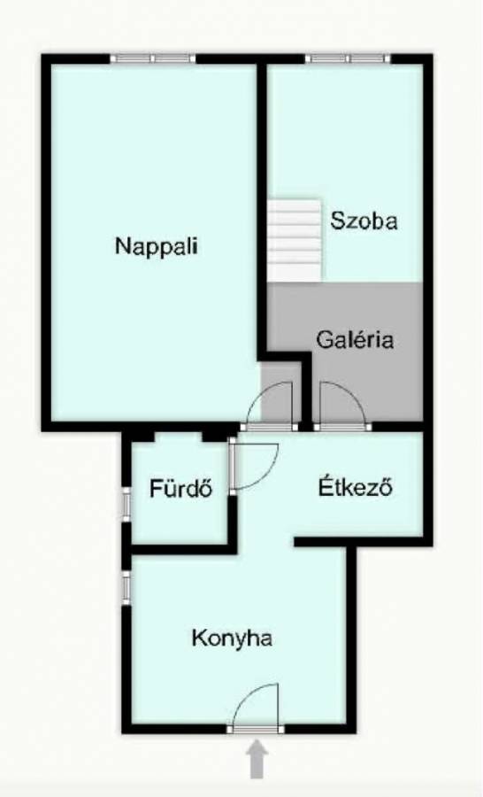 2 szobás, utcai nézetű, egyik szoba galériázott (5 m2, a galéria belmagassága: 1,5 m), így a tér még praktikusabbá, kihasználhatóbbá válik.