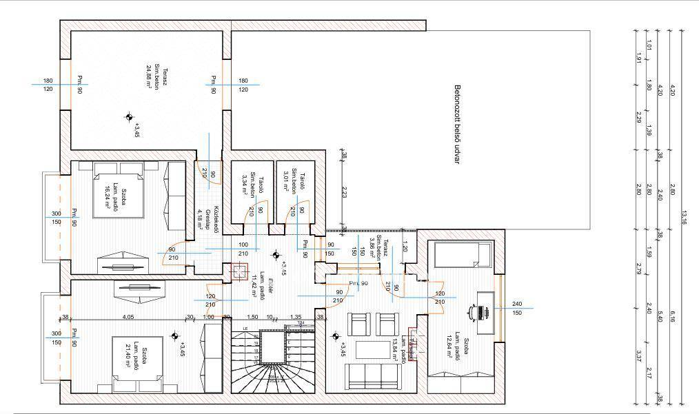 A 3 szintes, 5 szobás, 288 nm hasznos területű családi ingatlanban található: