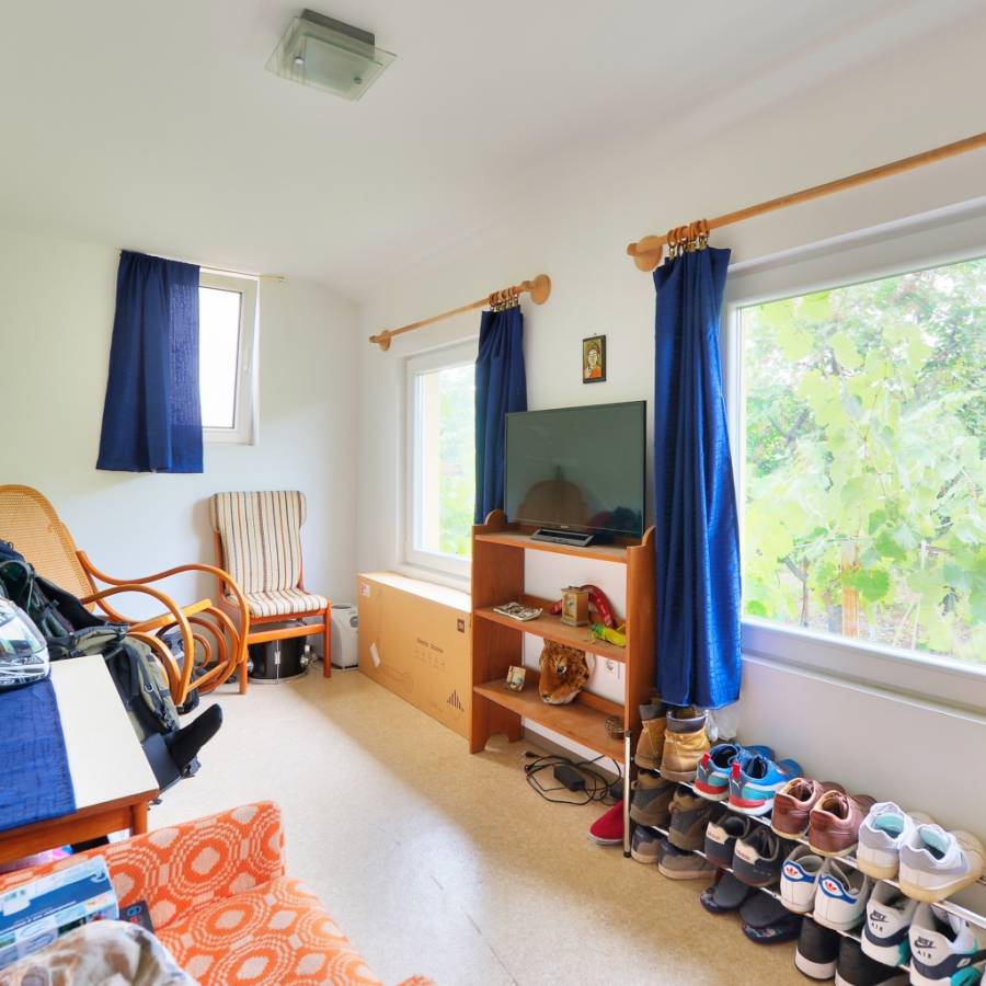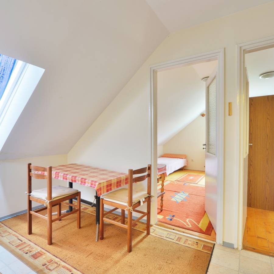 A társasház második épületének hasznos alapterülete kb. 90 nm. Telek területe összesen 460 nm. Ezt a házat a tulajdonos 2011-ben építette. Hozzá tartozik egy dupla garázs, mely 49 nm-es, a mellette lévő tárolók mérete kb. 10 nm. A garázs fölött lett kialakítva az egyik lakás, közel 45 nm hasznos alapterülettel. A másik lakás 45 nm, egy szobája a földszinten, egy pedig a tetőtérben lett kialakítva. Az épület alatt van pince 15 nm.