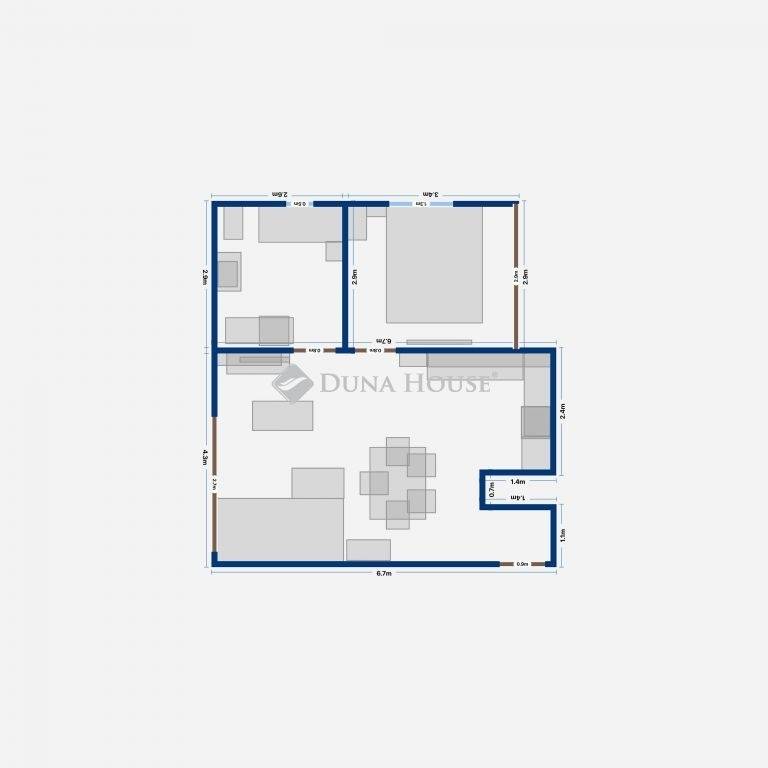 -1 hálószoba, amerikai konyhás nappali, fürdőszoba WC-vel