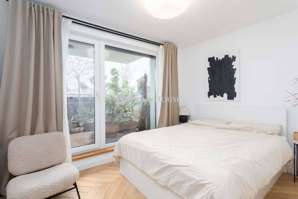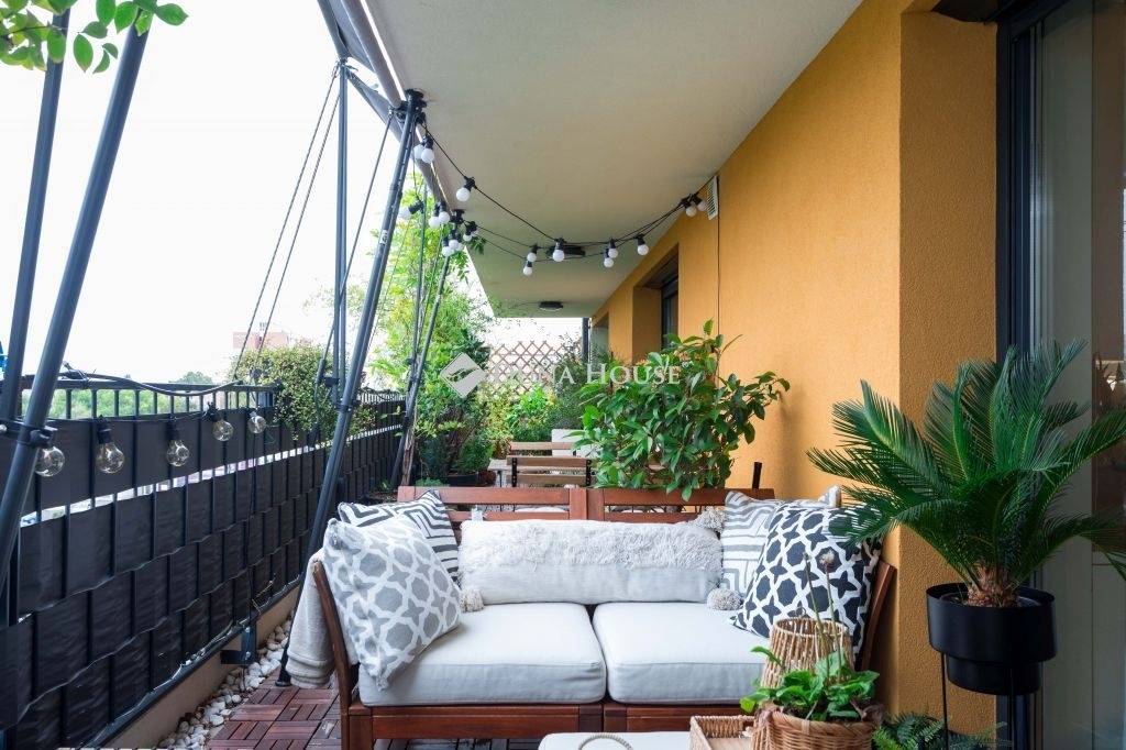 - A lakást betölti a természetes fény, köszönhetően a napfényes fekvésének és a nagy ablakoknak, melyek páratlan panorámás kilátást nyújtanak a környező kertekre.