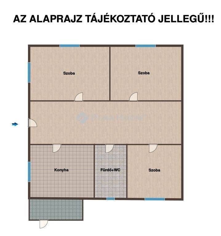 előszoba- konyha - 3 szoba- fürdőszoba+wc- nappali- közlekedő