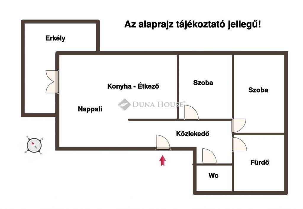 Az ajánlott lakás helyiségei :-előszoba- közlekedő- 2 szoba- nappali- konyha+étkező- fürdőszoba-wc (külön)- erkély