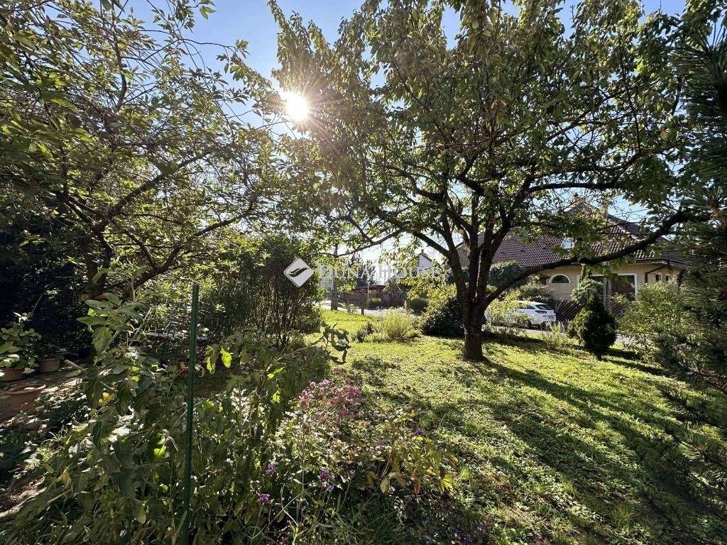 Az udvar rendezett, kerti csappal, tujákkal, valamint termő meggy- és cseresznyefákkal díszített.