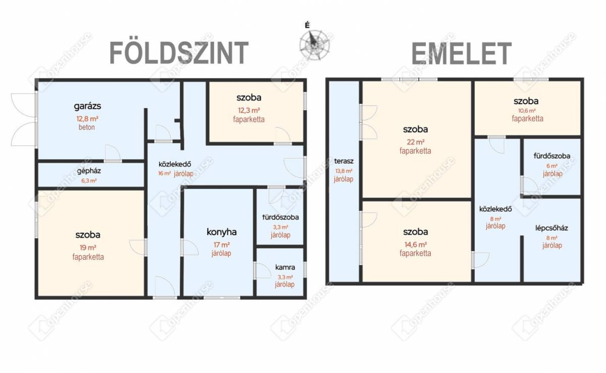 - a szobákban faparketta van, a többi helyiségben a burkolat járólap