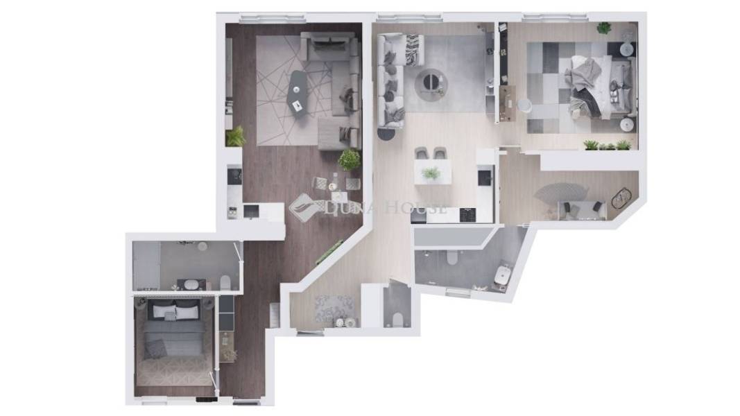 Budapesten, a IX. kerület Rehabilitációs részén, a Mester utca és Bokréta utca sarkán eladó egy 99 nm-es prémium, frissen és teljes körűen felújított, gépesített és bútorozott ingatlan, mely két önálló lakássá lett alakítva,