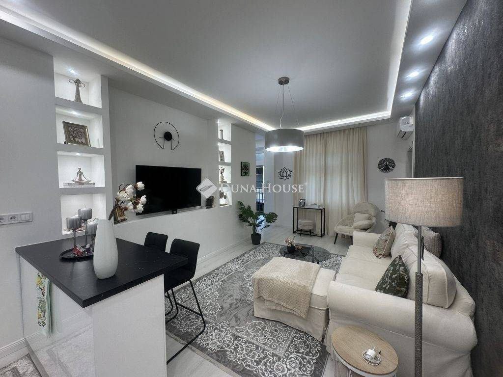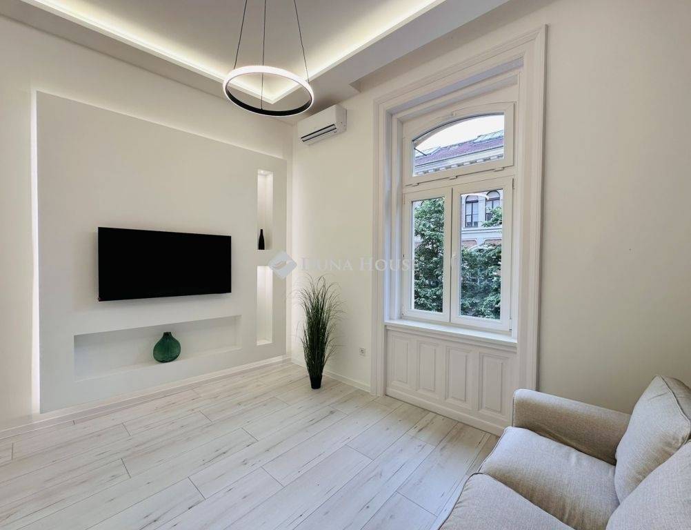 Budapesten, a IX. kerület Rehabilitációs részén, a Mester utca és Bokréta utca sarkán eladó egy 56 nm-es prémium, frissen és teljes körűen felújított, gépesített és bútorozott, kulcsrakész 2 szobás + gardrób szobás prémium lakás.