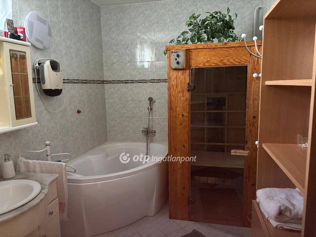 A főépület rendezett, kényelmes és otthonos, a nappaliban gyönyörű cserépkályha található, a lenti fürdőben pedig szauna biztosítja a kikapcsolódást.