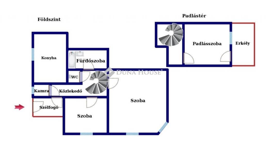 A ház földszintjén két szoba, konyha, kamra, fürdőszoba és külön WC található, a funkcionális elrendezésnek köszönhetően minden adott a kényelmes mindennapokhoz.