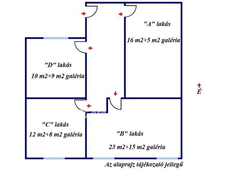 Az ingatlanok egy közös előtérből nyílnak. A galérián a hálószoba bútorzat berendezése igény esetén megbeszélhető. Az ingatlanok műszaki (teljesen új villamos és vízhálózat) és esztétikai tekintetben teljes körűen felújított állapotban kerülnek átadásra.