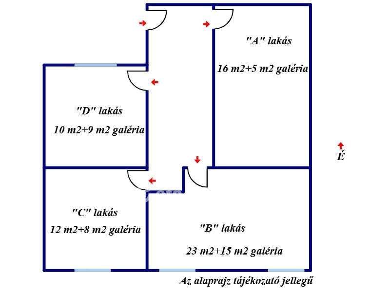 Az ingatlanok egy közös előtérből nyílnak. A galérián a hálószoba bútorzat berendezése igény esetén megbeszélhető. Az ingatlanok műszaki (teljesen új villamos és vízhálózat) és esztétikai tekintetben teljes körűen felújított állapotban kerülnek átadásra.