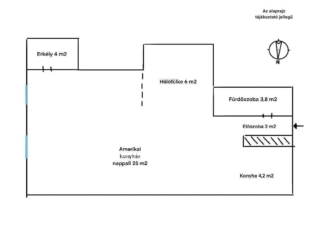 A lakás tágas, világos, egy légterű, de igény szerint könnyedén leválasztható egy kb. 6 m2-es hálófülke.