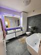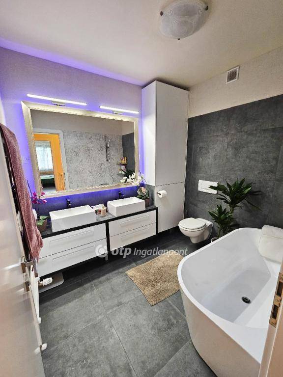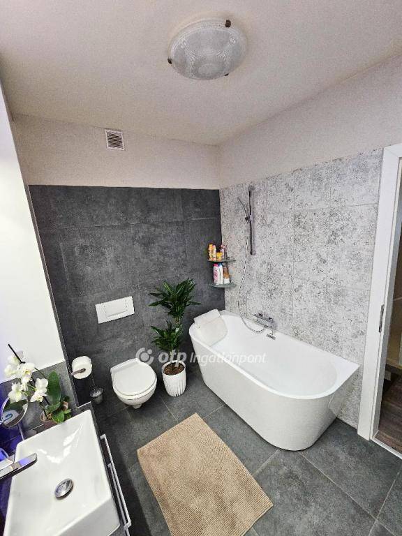 Ez a lakás nem csupán otthon, hanem életstílus: a tágas belső terek, a minőségi anyagok, a modern, letisztult berendezés és a saját kert különleges nyugalmat és kényelmet nyújtanak. A lakás teljes bútorzattal eladó, így akár egy bőrönddel is költözhetsz! A felújítás során nagy értékű csillár, robotporszívó, beépített bútorok, hatalmas konyhaszekrény is beépítésre került, melyek beletartoznak a vételárba. Emellett az emeleti fürdőszobában fénycső biztosítja napközben a természetes fényt.