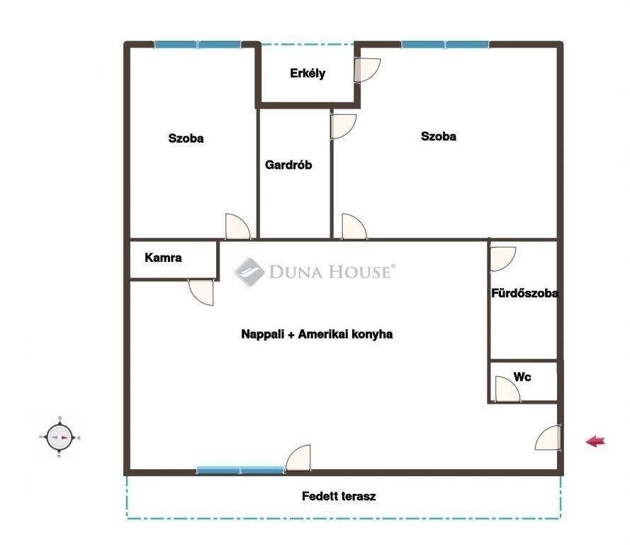 - 10 nm-es teraszra közvetlenül a nappaliból míg a kisebb 3 nm-es erkélyre a két szobából jutunk ki