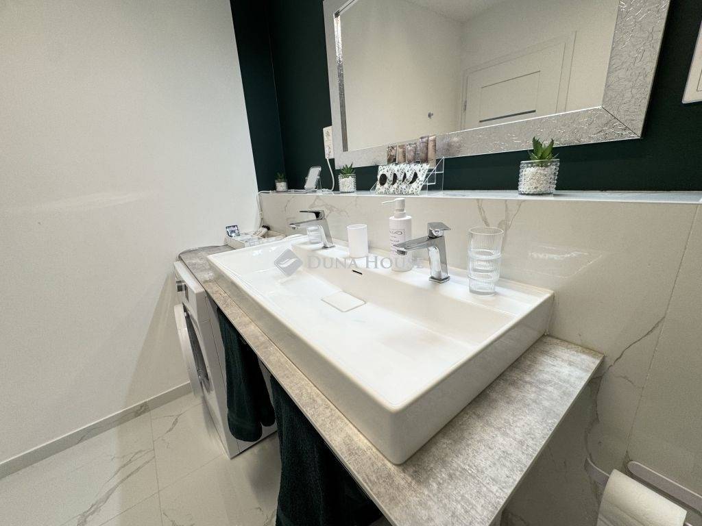 - helyiségei: minőségi konyha beépített gépekkel és kamrával, kádas fürdőszoba dupla mosdóval, külön vendégmosdó, gardrób és beépített szekrény, 2 erkély