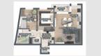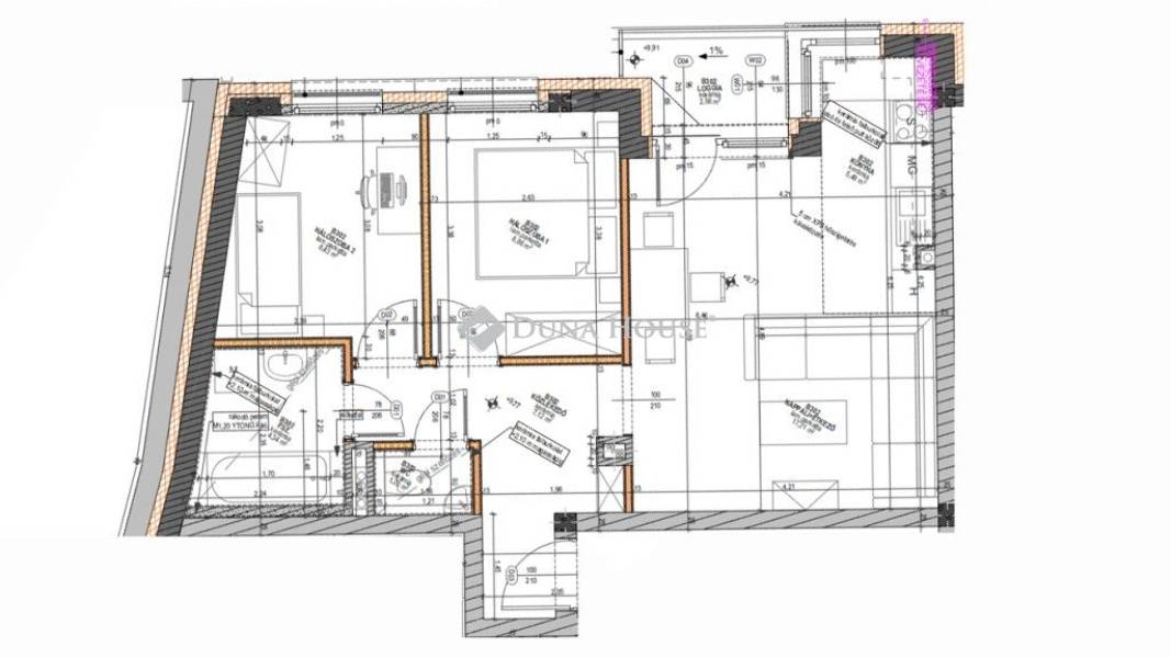 Ez a lakás az épület 3.-ik emeletén helyezkedik el, 56 nm, nappali + 2 szobával.