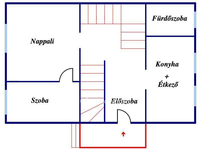 Földszint: előszoba, tágas nappali, konyha és fürdőszoba