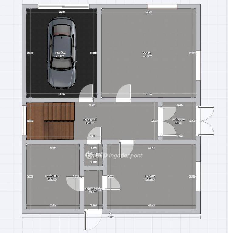 A ház összesen 182 m2 lakóteret kínál, két szinten elosztva. A földszinten garázs, egy külön bejáratú szoba, előszoba, konyha, zuhanyzó, a lépcső alatt wc, közlekedő és kazánház található, ideális akár külön lakrészként is. Az emeletet tágas, napfényes szobák uralják, a loggia csendes pihenőhelyet kínál, a konyha mellett kamra (innen lehet feljutni a padlásra is), a közlekedőből pedig egy jól használható fürdőszoba nyílik.