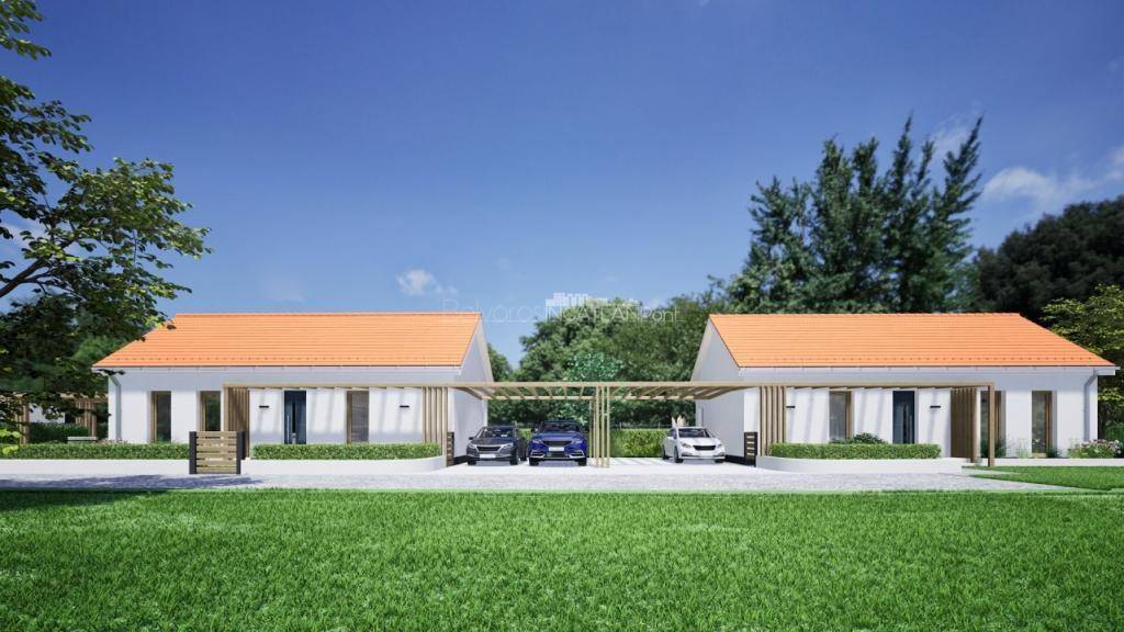 Gyöngyösfalun hőszivattyús téglaépítésű 67 m2-es ikerházak várják tulajdonosaikat nagyméretű teraszokkal, dupla gépkocsi beállóval, 441 m2 és 1429 m2-es telekrésszel, 2025. decemberi kezdéssel és 2026. év végi várható átadással.