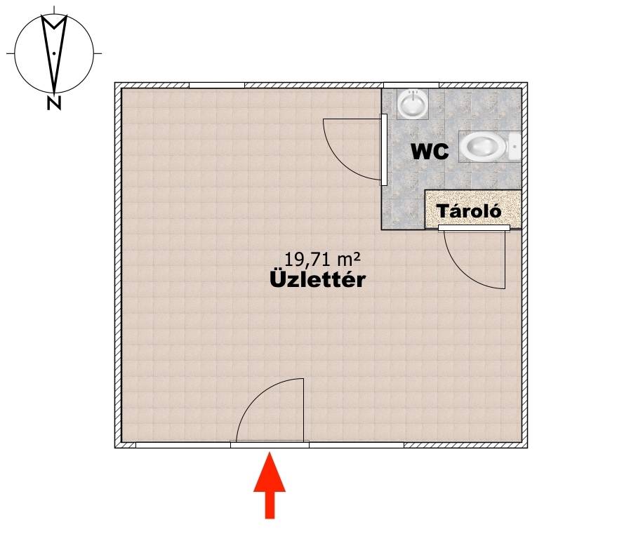 - 20 négyzetméteres üzlettér, valamint 2,5 nm-es WC kézmosóval