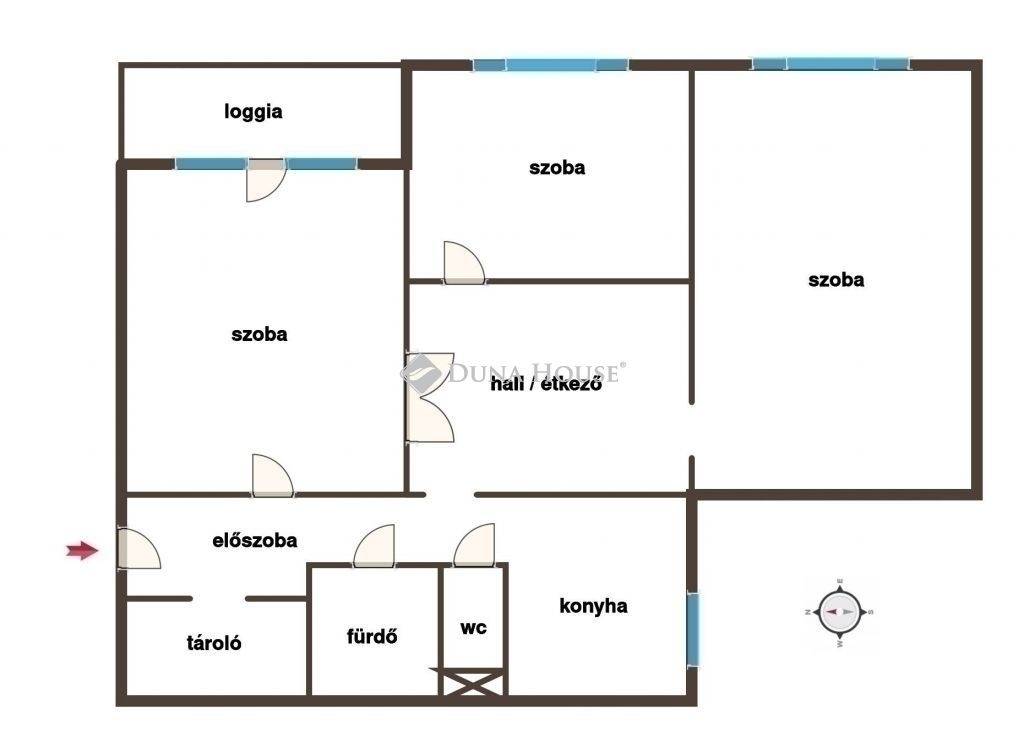 A 2,5 szoba + hallos / étkezős lakás könnyen átalakítható 2+2 félszobássá is!