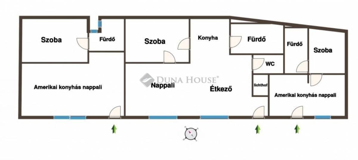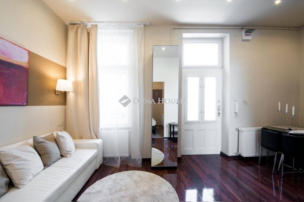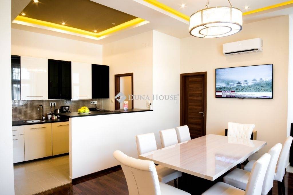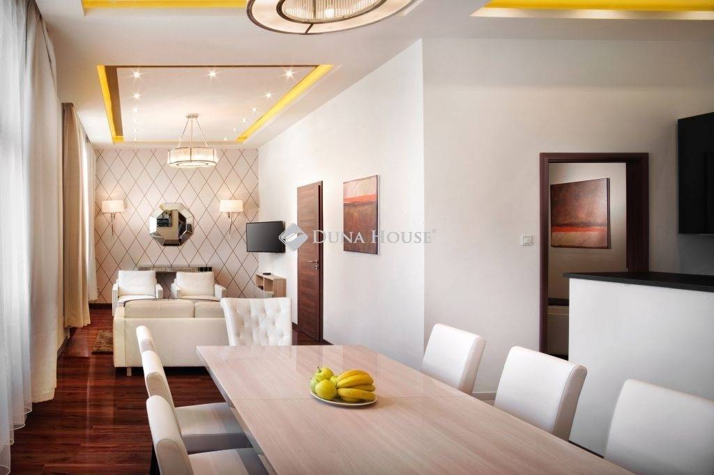 V. kerület Petőfi Sándor utca, legfelső emeleti, 140 nm-es, világos ingatlant kínálok eladásra.Az 140 nm-en 3 db különálló lakás lett kialakítva, amiknek a méretei a következők: 45+65+30.Mindegyik nappali plusz egy hálós lakás, a középső a legnagyobb és egyben a legszebb is, amelyben olasz dizájn bútorok is kerültek.A lakások külön a függőfolyosóról nyílnak, belül nincsen átjárás. A fűtésrendszer közös (Nagyteljesítményű gázcirkó, puffertatrtály, külön keringtetés), de külön termosztáttal vezérelhető mindhárom lakás hőfoka, illetve mindegyikben klíma is van.Az eredeti ablakokat megtartottuk, megerősítő kerettel és dupla üveggel felújítottuk. Mindegyik nyílászáró fából készült. A ház nagyon jó állapotban van, és kifejezetten igényesek a belső terei is. (kukák nincsenek elől, gyönyörű a kapualj, makulátlan a lift).Mivel ki vannak adva a lakások, ezért egyeztetni kell a megtekintés miatt.Várom hívását!