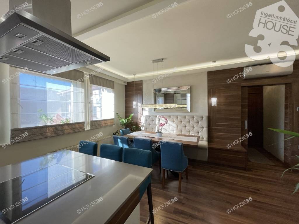 A lakás bruttó 93 m2, lakberendező által kialakított, prémium minőségű, ottmaradó beépített stílusos, egységes bútorzattal, magas színvonalú gépekkel felszerelve!