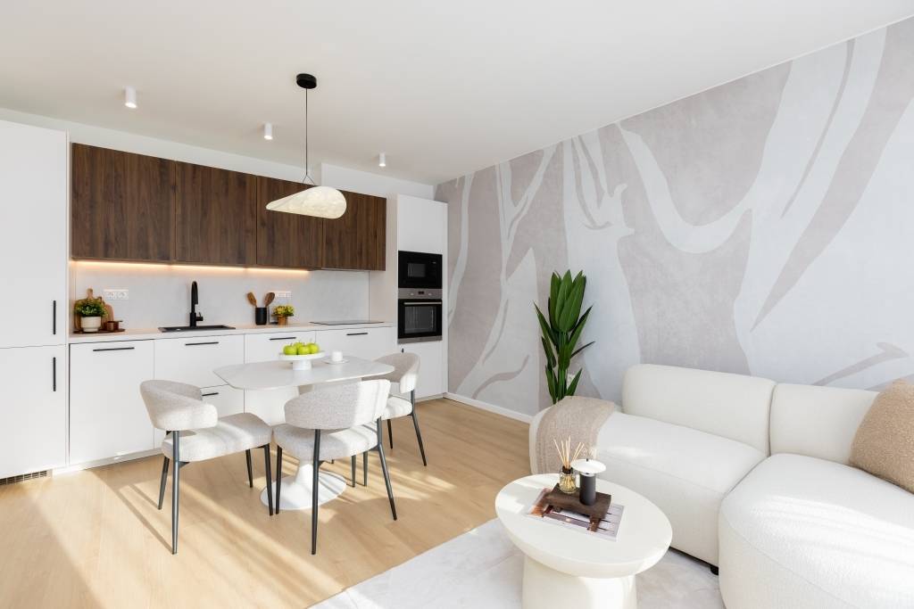 A vételár tartalmazza a beépített konyhabútort gépekkel, az előszoba szekrényt, a felszerelt lámpákat, valamint a függönyöket-karnisokat. A többi bútor és lakásdekoráció egyedi megállapodás alapján elérhető, megvásárolható.