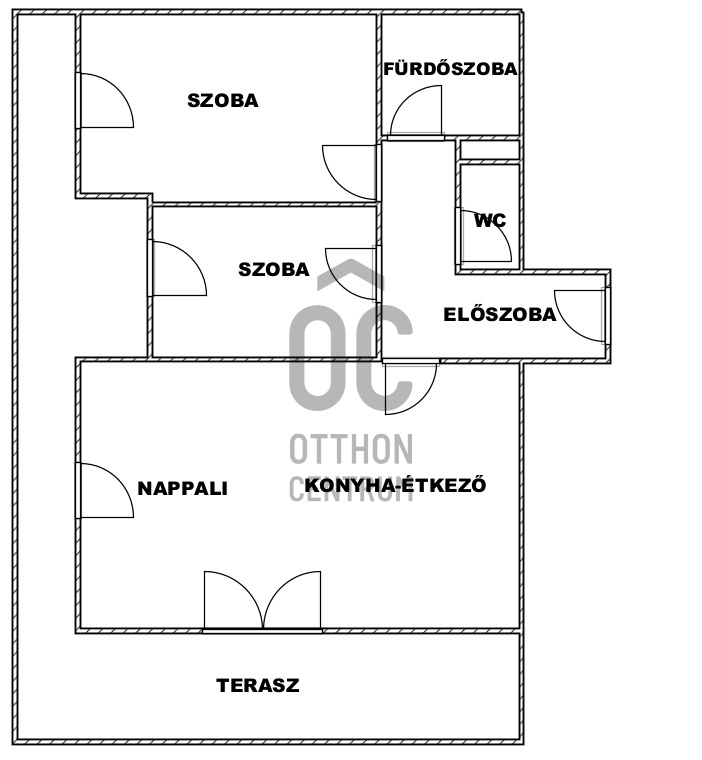 -Elrendezés: amerikai konyhás nappali + 2 külön nyíló hálószoba